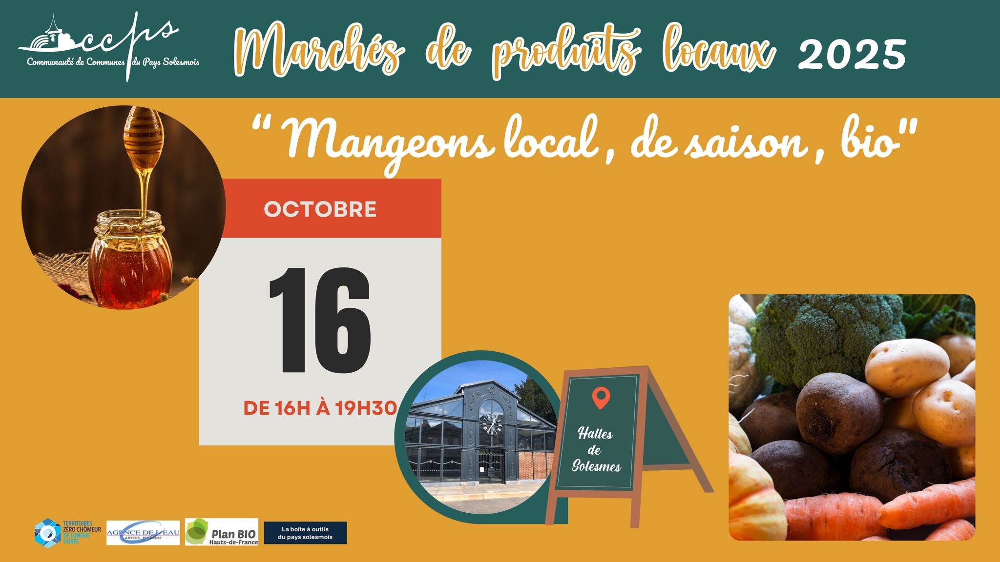 Fort de son succès en 2024, la Communauté de Communes du Pays Solesmois (CCPS) est ravie de vous inviter à retrouver le marché des produits locaux , organisé chaque 3ᵉ jeudi du mois , de 16h à 19h30 .
