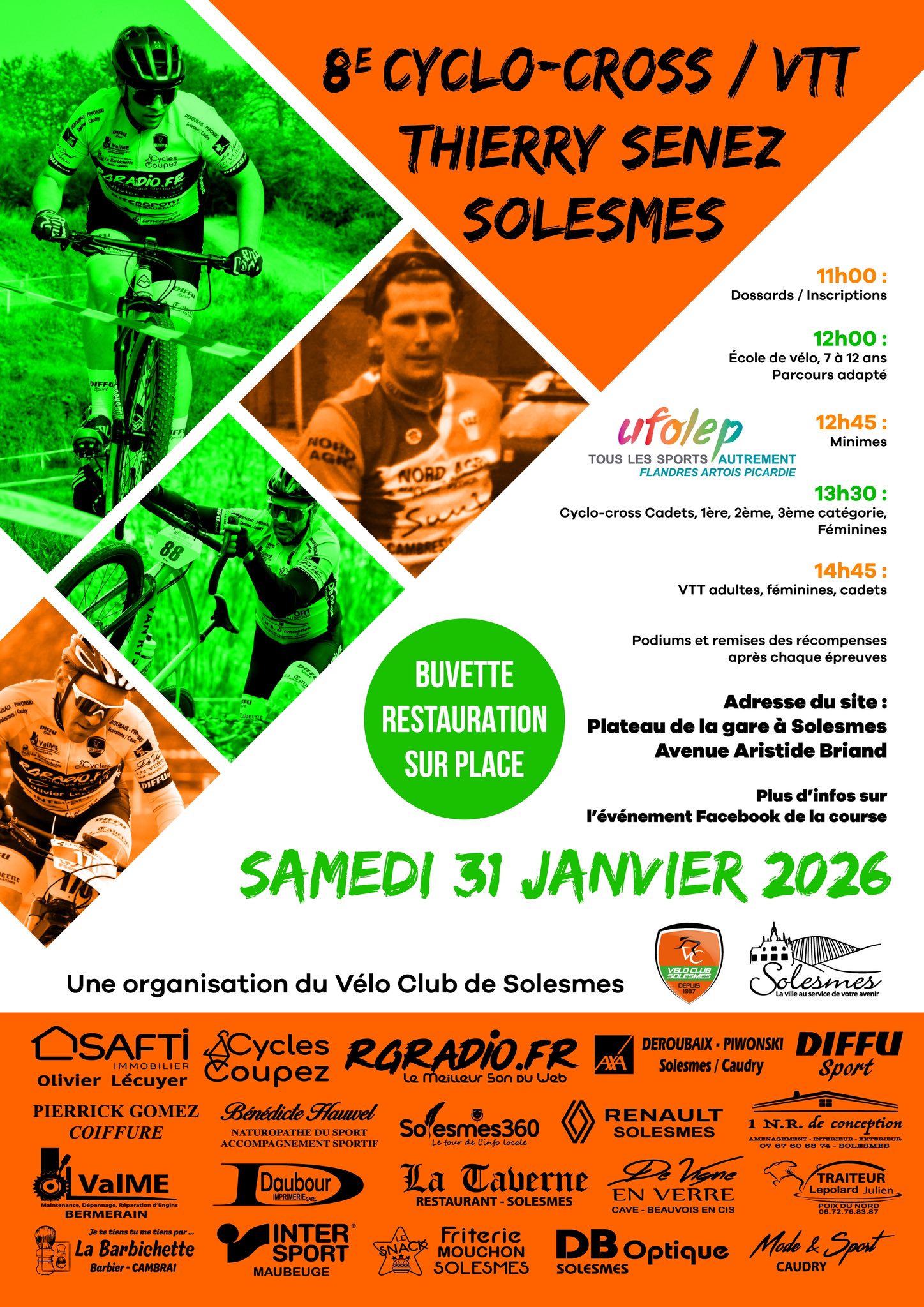Plus d'informations en cliquant ici : https://www.velodom-photo.com/presentation-du-8eme-cyclo-cross-vtt-ufolep-thierry-senez-a-solesmes.html?fbclid=IwY2xjawPS7WZleHRuA2FlbQIxMABicmlkETBqT0xsTjljZXJ3RXJsTmtic3J0YwZhcHBfaWQQMjIyMDM5MTc4ODIwMDg5MgABHqBYo10_YFkWq8f106ejCdJ1O2W_yHSRp9yc5XShUWpcTguLe5R7C9fq8jqC_aem_i8-gNsLPuBGK63yZN8QD6A