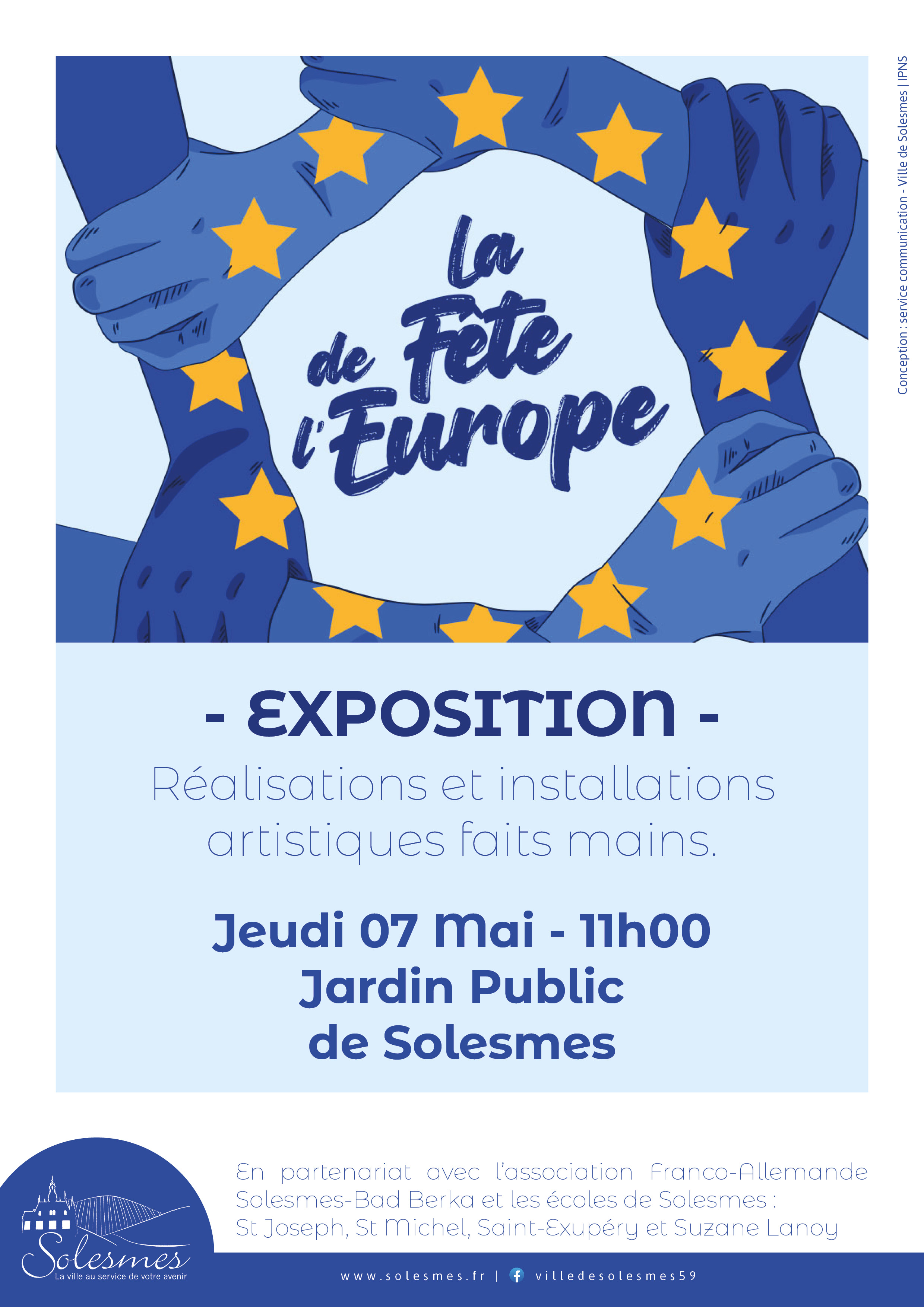 L’association franco-allemande Solesmes Bad Berka, en partenariat avec l’ensemble des écoles et le périscolaire, a le plaisir de vous inviter à célébrer la Fête de l’Europe (9 mai).